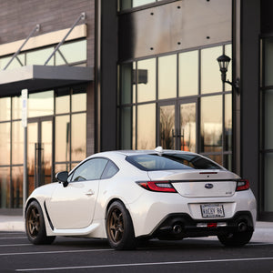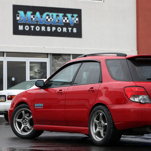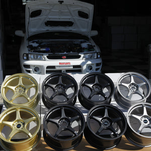 It's our first Mach V-branded wheel. We humbly call it the Awesome. It's a 17x9" wheel with a +42 offset. It's drilled with BOTH 5x114 and 5x100 bolt patterns, so it fits ANY Subaru application.