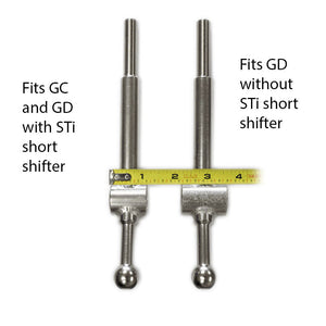 NOTE: If you have the accessory STi short shifter assembly (you can identify by the gold colored shafts, and by the narrower-width pivot) on your 2004-2007 Impreza/WRX, you'll need the GC (1997-2001) version of this short shifter. If you don't know, take your console apart and look at, and measure the shifter pivot point! See photo of what the shifters look like.