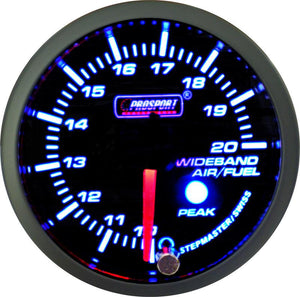 You won't find a better value in a wideband air/fuel meter than this. The Prosport wideband kit comes with a genuine Bosch wideband oxygen sensor, the gauge, cabling, and even a weld-on sensor bung. The 52mm gauge face displays air/fuel ratio in a 270-degree sweep that's easy to read. When the gauge is powered, off, the face is completely dark. ALL Prosport wideband gauges include 0-5 volt output signal and use the latest 4.9 Bosch sensors while most of the other brands use the older 4.2 Bosch sensor. Includes gauge, wiring harnesses, oxygen sensor, weld-on bung, gauge hood, and instructions.