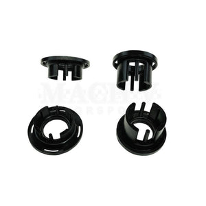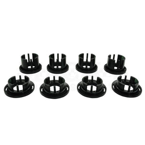 Set of eight bushing inserts. Black in color (the video shows older yellow-color parts).