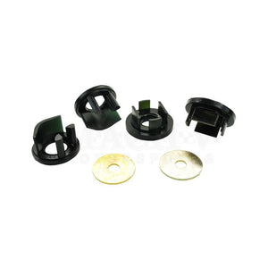 The Whiteline Flat Out rear differential mount insert or "positive power" kit is an easy to install solution to get rid of the "clunk". Have you ever experienced that terrible clunking sound during shifts? That is your rear differential moving around! The Whiteline rear differential mount insert kit will get ride of that annoying sound and get more power to the ground. The rear diff mounts in factory form allow the rear diff to move around a lot. The clunk is most noticeable during acceleration from a stand still and shifting gears quickly. The Whiteline rear diff mount kit will provide the driver with a precise gear shift and predictable clutch engagement. This kit installs very quickly and easily with simple hand tools. Whiteline includes all necessary hardware for installation as well as a grease packet and instructions.