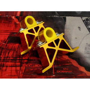• Factory rear sway bar mounts are intended to tie to factory sway bars. But go to a stiffer bar and your mounts may not be up to the task. These heavy duty mounts include a webbed-aluminum base to provide much higher strength. Choose the mounts that match your rear sway bar diameter.