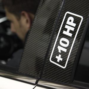 Everyone knows stickers add horsepower, right? We've spelled it out clearly with this one. If you don't want to put it on your car, get one to secretly stick on the far side of your buddy's car. Nice thick peel-and-stick heavy-duty vinyl applies easily, lasts a long time even when exposed to weather. About 5" wide x 2" high. Choose from black or white decal.