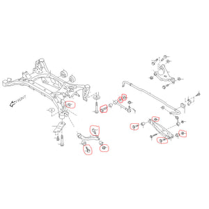 Hardware kit for the lateral and trailing arm links on the rear suspension of the 2013-2020 (ZC chassis) BRZ.