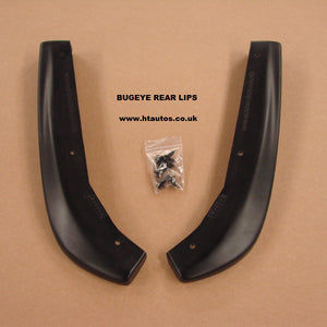 These polyurethane rear bodywork extensions help air to flow around the rear bumper. Plus, they look great! Set of two; includes installation clips. (You will need to drill three small holes in the underside of the rear bumper, but they will be hidden under the car.)
