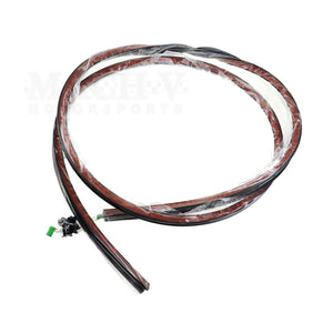 The flexible lip extension attaches with the included fasteners and pre-installed double-sided adhesive. It comes with Japanese language installation instructions, but you can find install videos on YouTube. Total length is about 103".