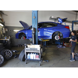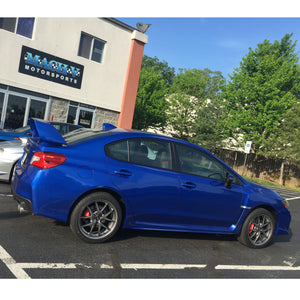 So you want to go rally in your STI, but those pesky humongous Brembo brakes are preventing you from bolting up some sick rally rims? Never fear. DOWNgrade those Brembos to Subaru's trusty red four-pot front/two-pot brakes with this kit. The full kit includes RED (not black like some other vendors sell) four-piston calipers and matching rotors for the front, two-piston calipers and matching rotors for the rear, Centric Posi Quiet pads all around, and caliper mounting brackets for the rear.