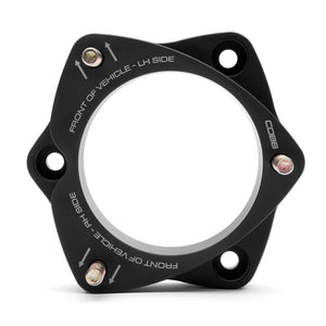 The main components of COBB's Subaru lift kit are machined 6061 aluminum spacers that sit atop the factory strut-tops for a taller stance. Each spacer is hard anodized black and features laser etched logos. The front two spacers are identical and simply clock two different directions during installation depending on which side of the vehicle they are used. Bespoke rear endlinks are adjustable to dial in preferred tension on the rear anti-sway bar. Zinc plated grade 10.9 hardware ensure long life, even in extreme conditions.