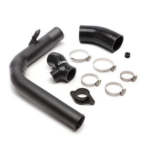 The COBB Charge Pipe for the 2015-2021 Subaru WRX is constructed of 6061 aluminum tubing. An integrated billet transition smoothly takes diameter from 2" to 2.5" to allow for increased flow while maintaining clearance for larger aftermarket radiators. A wrinkle black powder coat finish gives an upgraded yet subtle appearance under the hood. The included billet turbo adapter and 5-ply silicone coupler make for a straight forward and leak free installation and are compatible with both the factory bypass valve and COBB LF BPV.
