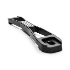 • A little under-hood style goes a long way at local meets and car shows. Cobb Tuning's 6061 T6 billet aluminum battery tie down is anodized black to complement your engine bay. The Cobb logo adorns the top. The shape kind of looks like a wrench.