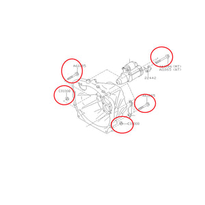 Subaru transmission bell housings are held onto the block using these long, high-strength bolts. We often find these missing or damaged during motor or transmission installs.