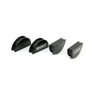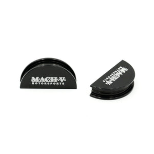 This semicircular seal fits into the back of the head to seal against the valve cover on most EJ motors. The stock rubber part can get brittle and break over time; it can also blow out under high crankcase pressure conditions. Our aluminum version fit snugly and will never wear out or blow out. The Mach V logo is lasered on over a nice anodized black finish.