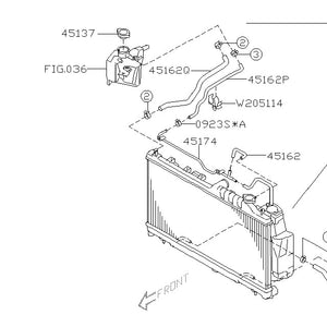 45162P: Runs from the coolant expansion tank to the metal pipe that runs along the back of radiator to the coolant overflow.