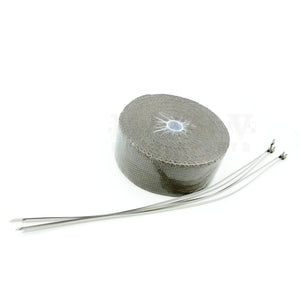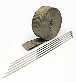 Titanium header wrap is very pliable and easy to install; you do not need to wet it before wrapping headers or pipes. One 50-foot roll will wrap one medium header. A 25-foot roll will cover a downpipe.