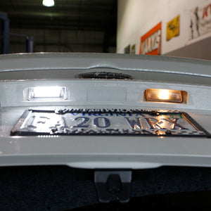 Install note: The stock lamp fixtures have to be removed by pushing a tab on the back side; remove inner trunk/hatch trim until you can reach them. The new lamp lead inserts into the old bulb socket. Unlike regular bulbs, LED bulbs have electrical polarity, so if they don't light up the first time, unplug them and plug them in the other way. Also, make sure the wire leads are fully in contact with the bulb socket.