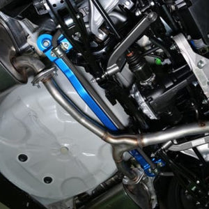 This rear chassis brace from Cusco installs under the rear of the car to tie together the rear chassis with the sway bar mounting points, improving chassis stiffness and handing. Very lightweight, strong tubular aluminum design, with a gorgeous metallic blue finish.