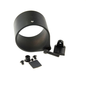 The mount consists of a small billet aluminum pad, which you bolt to any surface, or at least any surface that's accessible from the back. We like to mount it on top of the steering column cover. The gauge cup (also formed from a hunk of billet aluminum) bolts to the pad. A clever bolt system allows the cup to swivel to your desired location, and then tightens for a snug and secure fit. A small cap covers the bolt head. Included cushion pads (52mm) or set screws (60mm) hold your gauge snug.