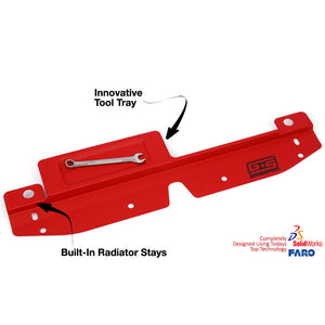How many times have you lost a wrench or socket in your engine bay? Yeah, that's what I thought, too many to count. Finally after all of these years of losing tools, GrimmSpeed has come to the rescue. Introducing our Radiator Shroud w/ Integrated Tool Tray for Subaru vehicles. Another common issue that we are fixing is that in stock form, because of the way the front of the Subaru is designed, there is incoming air that doesn't actually pass through the radiator because of some large gaps in sealing at the top. Our shroud forces this air back through the radiator which in turn keeps the radiator cooler. Thirdly, we snuck in yet another cool little feature that you won't find on other radiator shrouds; we have incorporated the radiator stays into our shroud. Yep, you can now ditch those OEM stays and transition over to our super clean approach to using the shroud as the radiator stay. Wrap all of this up in some Heavy Duty DuPont™ Wrinkle Powder Coat and you have yourself a sexy little innovative package.