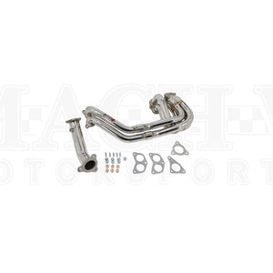 The IAG Unequal Length Headers are the perfect way to add more performance to your Subaru WRX STI and still keep the iconic “Boxer Rumble.” The headers are fully constructed of T304 stainless steel, including cast stainless flanges! The unequal length headers feature a 45mm inner pipe diameter for maximum flow and performance. Due to the free-flowing design of this header, you will see gains across the entire RPM range, as exhaust flow is vastly improved. The header also features a slip-joint expansion section to accommodate for flex caused by heat cycling. Each IAG header is fully TIG welded for maximum strength.