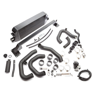 Remove the overworked factory intercooler from your WRX in favor of the COBB Front Mount Intercooler Kit. Featuring a massive 30" x 10.35" x 3.5" Bar and Plate core and 2.5" piping, this kit is capable of supporting in excess of 800 whp. The piping is mandrel bent aluminum and finished in wrinkle black powder coat to keep the engine bay tidy. There is also be a provision for an air temperature sensor for those who need to convert to speed density later on.