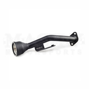 The Killer B Motorsport relocated oil fill tube changes the location of the oil fill tube and cap. This product was designed from customer requests and complaints about their aftermarket FMIC (Front Mount Intercooler) kit tubing rubbing and interfering with the factory oil fill tube and cap. The Killer B fill relocation tube moves the fill cap to a location that is accessible, and does not rub on your intercooler plumbing.