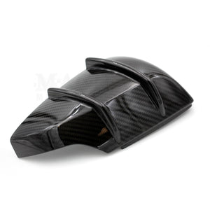 • These unique mirror caps are skinned in genuine carbon fiber, and were found on the one-year-only, Japan-only special edition 2018 WRX STI RA-R. Besides being made of carbon fiber, they also feature aerodynamic fins to guide air over the top of the mirrors. They install directly in place of the stock 2015-2021 STI mirror caps. Yes, they are very expensive.