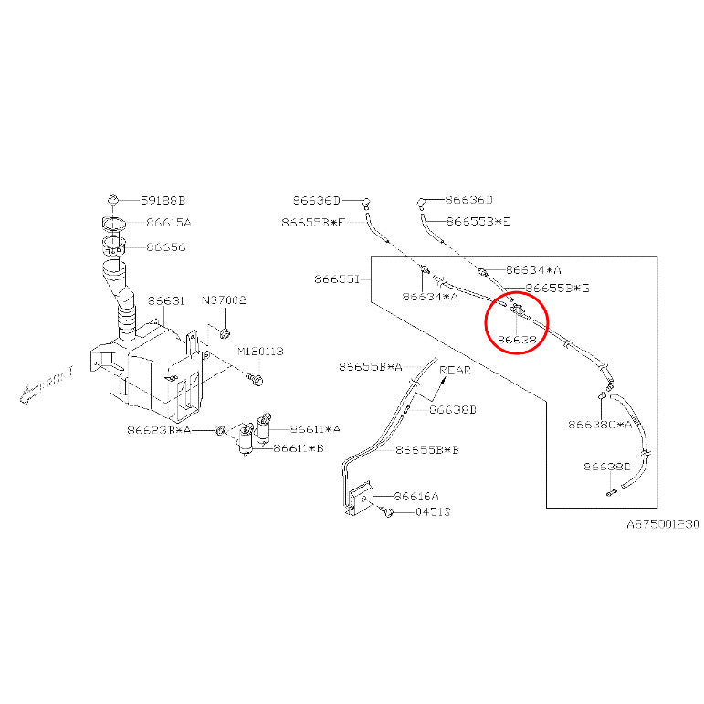 Replacement OEM Washer connector. This connector clips to the under side of the hood and can break or wear out causing the line to droop.