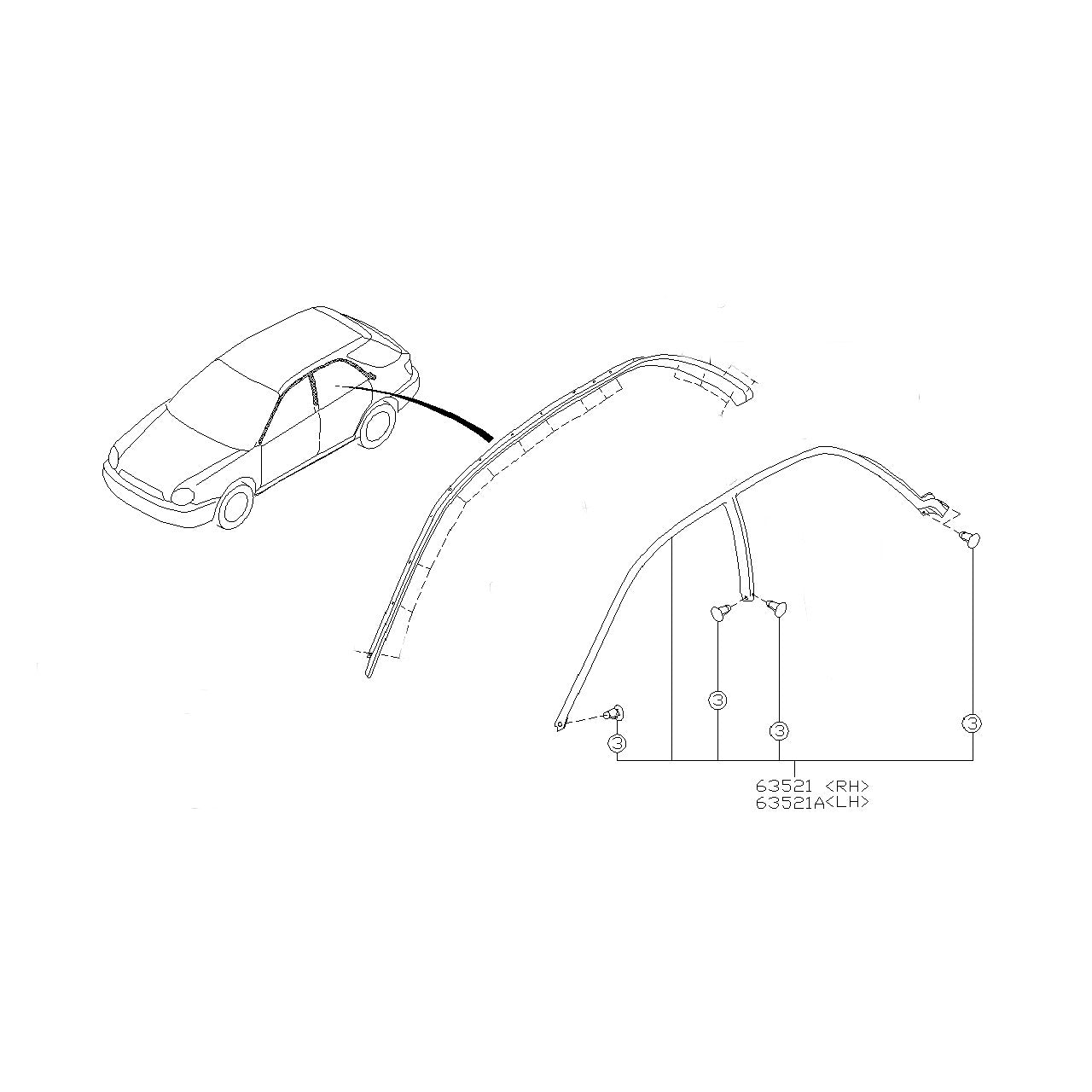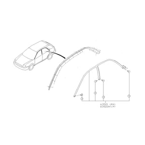 This is the OEM Subaru rubber window weather stripping that runs along the roof line and B pillar on the upper part of both doors of the 2002-2007 Subaru Impreza/WRX/STI wagon.