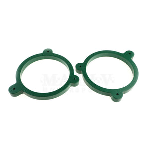Looking to fit that nice new speaker in the doors? Realize that you need a spacer so it doesn't hit the window? We have what you need. Computer-machined from sturdy 3/4" thick genuine plastic, these spacers bolt to your doors and make room for your deeper (and presumably much higher quality) aftermarket speakers. Inside diameter is about 5 5/8". The car-side holes are pre-drilled for you. You will drill your own mounting holes for your speakers; check your speaker specifications for mounting hole requirements.
