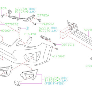 These OEM Subaru plastic clips hold the corner of the front bumper cover to the fender on most 2008+ Subaru cars. Part W140062 on the diagram.