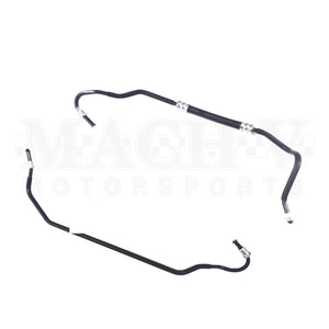 These metal lines are located on the steering rack, and can leak from behind the insulation. Replace your leaky factory lines without having to do the whole steering rack!