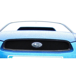 New! We now offer a version of the upper grille that does NOT have the center hole for the Subaru badge, so you can have an all-blacked-out upper grille opening. You will have to remove the stock badge and or shave down the badge-mounting bezel, or cut out the whole center plastic section of the OEM grille in order for the no-hole Zunsport upper grille to fit. (See the photo on this page where we cut out the entire center badge-holder section.)