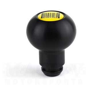 It's cool, it's inexpensive, and it's made in the good old U.S. of A. The Kartboy shift knob is a DIRECT replacement shift knob -- no goofy adapters to come loose, no annoying set screws. This solid-aluminum CNC-crafted knob threads directly on your OEM shift lever, or a Kartboy or STi short shift lever. There's even a nicely-machined notch to hold up the shift boot, for a perfect install. Available in clear or black anodized finish. Each knob comes with both yellow and black Kartboy logos for the top of the knob. (Don't apply your logo until you get the knob threaded on, so it's facing the right way!) Comes with both yellow and black Kartboy emblems, or choose an STi emblem for a small additional charge.