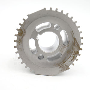 OEM Subaru EJ motor crank pulley sprocket, which incorporates the tone wheel for the crank position sensor.