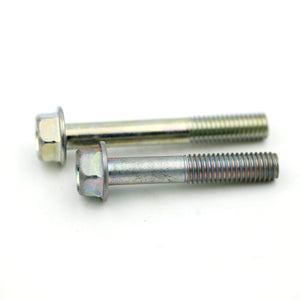 This bolt holds the driver (left) side upper timing belt idler pulley in place on Subaru EJ motors. Since there are two versions of the pulley, there are two versions of this bolt. The longer bolt (54mm total under-head length) fits the double-bearing pulley design. The shorter bolt (45mm total underhead length) fits the single bearing pulley design.