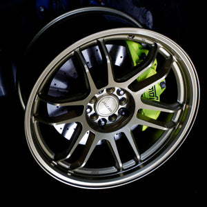 • The Rota Roku wheel has a unique design with angled spokes that spread out from the center, then kink back toward the lip of the wheel. The 18x9.5 +38 is big and wide, and fills out late-model Subaru wheel wells perfectly. This wheel is drilled with both 5x114 and 5x108 bolt patterns -- the 5x108 pattern won't matter much to Subaru owners, so just think of them as weight reduction holes. Center caps are included. Weight is a scant 20.45 pounds each. Clears Brembo brakes, including 2018+ STI brakes.