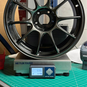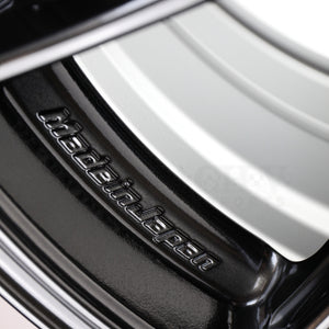 Color is Weds' "EJ Titan" color, which is a kind of Hyper Black (a sort of smokey silver/black color). Note that even the paint on these wheels is special -- Weds uses a vapor deposition paint process that allows the paint to be thinner than normal, only 16nm instead of the usual 50nm, meaning -- you guessed it -- light weight. Weds says: "This new paint technology creates a flatter and smoother surface by reducing molecule overlapping, creating a shinier, metallic finish. Reflective properties in the paint allows for reduced heat retention, with the addition of silica treatment. Chemical resistance has been improved to increase the durability of the finish."