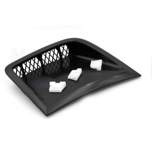 These plastic pieces have an annoying tendency to pop off and get lost. We stock replacements. The vents come ready for painting; have your local body shop spray them in the color of your choice.