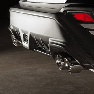 The Cobb Tuning 3" Stainless Steel Cat-back Exhaust for the 2022+ Subaru WRX uses a unique straight-through muffler section rather than common chambered designs, which minimizes tubing bends, reduces back-pressure and keeps sound output at 95db SAE standards. The outstanding craftsmanship and attention to detail are evident in every aspect of this cat-back. Exhaust gasses are evacuated through 3-inch diameter tubing into the center inlet of the 24-inch wide muffler section. The exhaust gasses pass through a reversed Y merge, efficiently splitting the exhaust into separate muffling chambers on each side of the canister. 3-inch outlets emerge symmetrically from each side of the canister and direct the exhaust out the rear through quad polished exhaust tips. This straight-through exhaust design is much more effective at reducing exhaust back-pressure 304 stainless steel is used throughout the exhaust construction. All components are meticulously TIG welded for outstanding appearance and strength. Four custom exhaust tips fill the factory bumper cut-outs perfectly, protruding just enough to show off the Cobb logos etched into the top of each polished tip. All necessary hardware is included for installation.