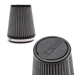 This intake system utilizes several unique features in an effort to maintain optimal flow for performance while minimizing turbulence. A custom conical air-filter element, CFD-designed velocity stack and unique air flow straightener grid are designed to smooth the incoming air flow as it passes the Mass Air Flow sensor for precise readings. The one piece high temperature plastic composite design saves weight and reduces heat transfer.