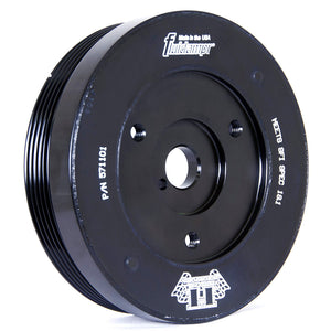 The Fluidampr performance damper for 2013-2021 FRS/BRZ/GT86 and 2015-2021 Subaru WRX applications incorporates a six-rib drive pulley and is precision CNC machined from high grade steel. Both the outer housing and internal inertia ring is high-speed computer zero balanced from the factory. The pre-drilled 3 bolt hole pattern (1.810 center – 5/16-18 UNF 2.75) on the outer housing accepts an ARE dry sump drive or other accessories with the use of a custom mounting bracket. The damper is finished in a corrosion resistant black zinc chromate finish and includes an engraved timing mark. Made in the USA.