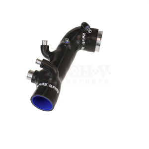 Of all the turbo inlets we sell her at Mach V Motorsports, this one fits the best. Why? Because we worked with Fuku Works to test-fit several rounds of prototypes, tweaking a hose angle here and moving an attachment there, until the fit was as could as we could make it.