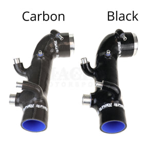 All Fuku Works silicone turbo inlet pipes are made with a multi-layer process that includes an internal wire mesh reinforcement for maximum rigidity to resist pipe sucking on even the largest of turbos while providing the largest possible inlet diameter, resulting in more air flow and more power. Dyno tested and proven, the all-silicone construction also eliminates heat soak.