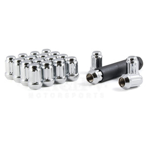 These are basic steel spline-style lug nuts. They're nothing fancy, but they're a decent fastener at a very good price. Set of 20 lug nuts plus a tough steel adapter tool. Available in black, chrome, or anodized blue.