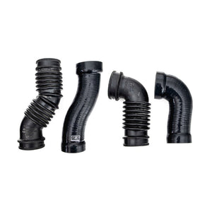 First is the smooth inner surface, removing the pockets from the OE structural corrugated folds. The GrimmSpeed Post MAF Hoses are comprised of 4-ply silicone and unlike our competitor's offerings, are reinforced with an internal stainless steel wire running the length of each piece. This makes our hoses sufficiently flexible and also allows them to retain strong structural properties for a design that maximizes flow, is very easy to install and won't collapse under vacuum.