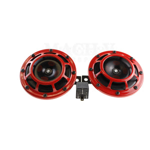 Yep, these are the famous Hella Supertone Horns. Transform your horn from the Road Runner "meep meep" sound to "German autobahn blaster" sound.