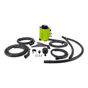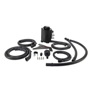 The Street Series AOS maintains the OEM PCV system functionality, but supplements its capacity. The Street Series AOS PCV discharge gasses return to the turbo inlet, retaining a PCV valve to draw additional suction, improving air oil separation. The Street Series AOS protects from oil dilution and lubrication failures in ethanol fueled application because the Street Series AOS captures fuel vapors out of the oil and returns these vapors to the intake tract for combustion. The Street Series AOS protects from both oil entrainment in the intake flow and oil dilution in the engine's lubrication system far better than the OEM PCV system alone.