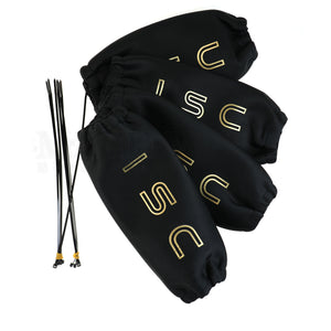 Black in color with gold ISC logo. Set of four coilover sleeves, plus zip ties. Fits most Subaru coilover applications.