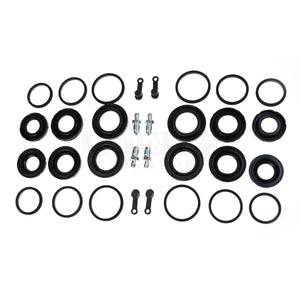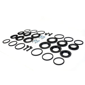 Note that these calipers are monoblock design, so they don't split apart and therefore these kits do not include crossover o-rings. (Actually the rear kit may come with o-rings, but you will not be using them.)