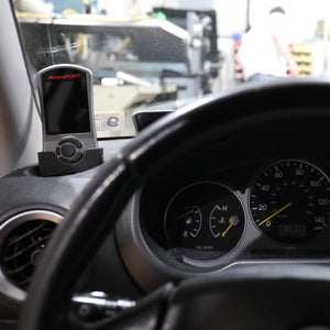 At this point let us give a couple of disclaimers: First, you should not stare at your Accessport while driving. Eyes on the road! Second, although the Mach V Accessport mount will not melt from the heat, the Accessport is not designed for the temps that can be reached in a hot car in the sun. Put your Accessport away somewhere cool when it's not in use, especially if your car is going to be in direct sun. Plus, that way people can't steal it.